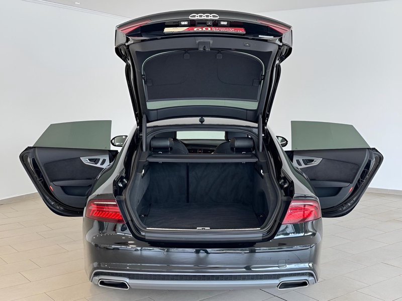Airbag Fahrer-/Beifahrerseite, Antriebs-Schlupfregelung (ASR) mit EDS, Audi Drive Select, Außenspiegel asphärisch, links, Außenspiegel asphärisch, rechts, Außenspiegel Wagenfarbe, Bremsassistent, Fahrassistenz-System: Anfahr-Assistent (hold assist), Fensterheber elektrisch vorn + hinten, Fondsitzanlage (2 Sitzplätze), Gepäckraumklappe elektr. betätigt (öffnen + schliessen), Heckklappe mit Spoiler integriert, Heckleuchten LED, Heckspoiler (elektrisch ausfahrbar), Innenausstattung: Dekoreinlagen Seidenglanz, Isofix-Aufnahmen für Kindersitz, Karosserie: 4-türig, Kopf-Airbag-System (Sideguard), Kraftstofftank: 75 Ltr., Lenksäule (Lenkrad) mech. Höhen-/Längsverstellung, Mittelarmlehne hinten mit Fach, Motor 3,0 Ltr. - 235 kW V6 24V TDI, Multifunktionsanzeige / Bordcomputer, Parkbremse elektro-mechanisch, Reifenkontroll-Anzeige, Schadstoffarm nach Abgasnorm Euro 6, Schalt-/Wählhebelgriff Leder, Seitenairbag vorn, Start/Stop-Anlage, Wärmeschutzverglasung grün getönt